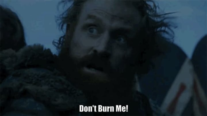 House Bolton (currently hauled up in Winterfell) are promised to play a big part in season six. Headed up by Stark killer Roose Bolton and his Stark raping bastard son Ramsay, rarely has a family been so hated since the Trumps. Seen here sporting their sigil of 'the flayed man', this scene is the epic (rumoured) battle between House Bolton and a great Northern army. Expect a few familiar faces to turn up. Also could the gruff Wildling Tormund Giantsbane be in trouble? Seen here surrounded by Bolton men, could he be next to top the bonfire?