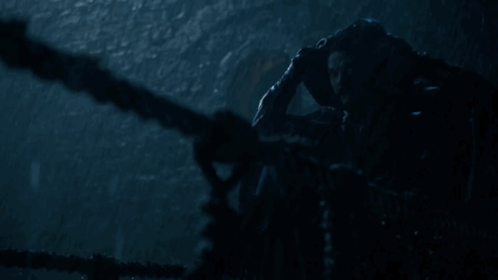 What first looks like Alfie Allen's Theon Greyjoy (happens a lot in this trailer), is in fact new addition Pilou Asbæk. Asbæk plays Theon's kickass pirate uncle Euron Greyjoy and the scene above depicts a very important Greyjoy death (yes, that family DOES still exist). It leads to a storyline called the 'Kingsmoot', so look forward to a lot more of everyone's favourite nautical family and taking to the high seas. No this isn't Pirates of the Caribbean.