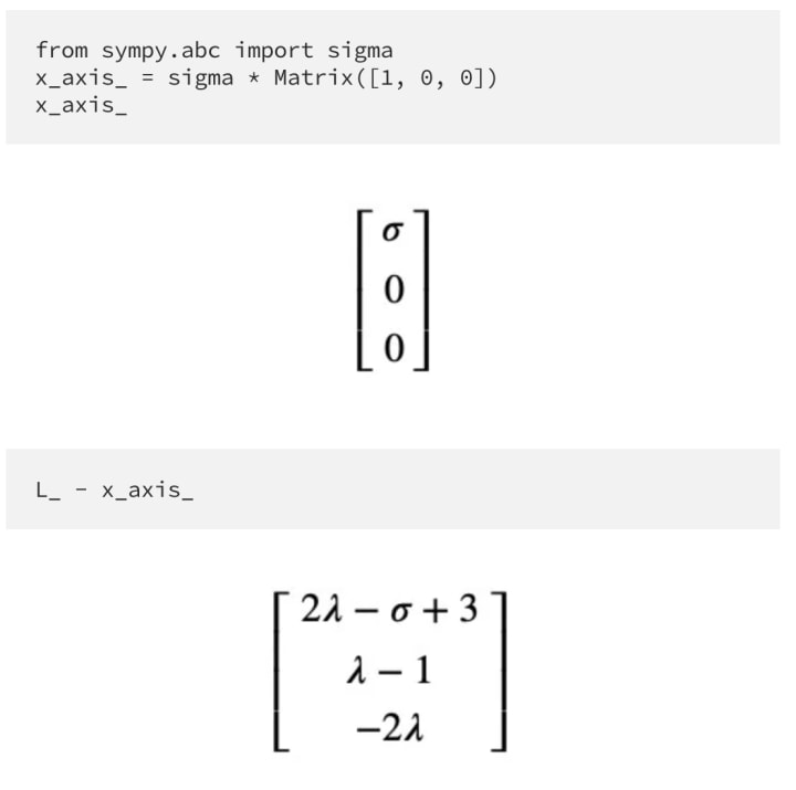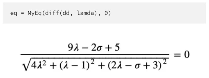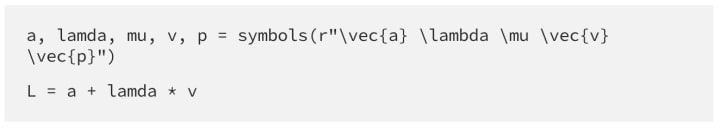 Note that we have to write lamda without “d”, because lambda is a reserved keyword in Python. Oh, and yes, you can define symbols using LateX syntax like in the example above.