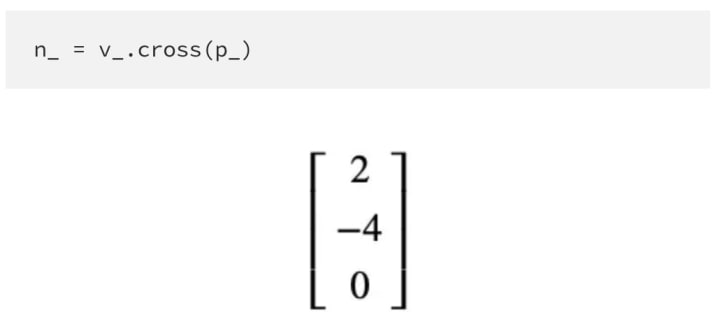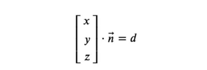 where 𝑛⃗ is the normal to the plane and 𝑑 is a constant. Let’s calculate the normal of the plane. This is simply the cross product of two linearly independent vectors in the plane:
