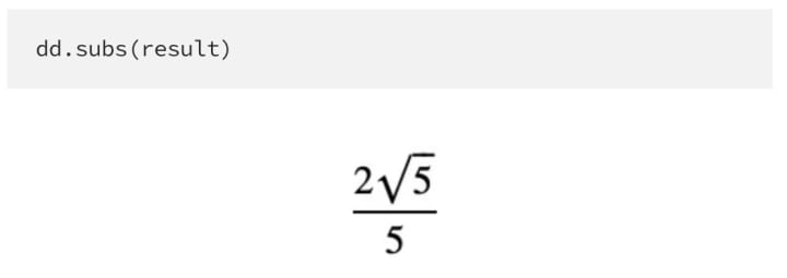 The result is a Python dict which can be used as argument in the subs method for substitution: