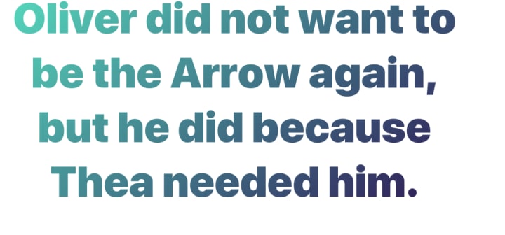 Oliver was willing to go against his promise to honor Tommy to rescue her when she was kidnapped in Season 2's first episode, "City of Heroes." Oliver did not want to be the Arrow again, but he donned the suit because Thea needed him. There was no hesitation, which makes Thea's reluctance even more damaging to her character.