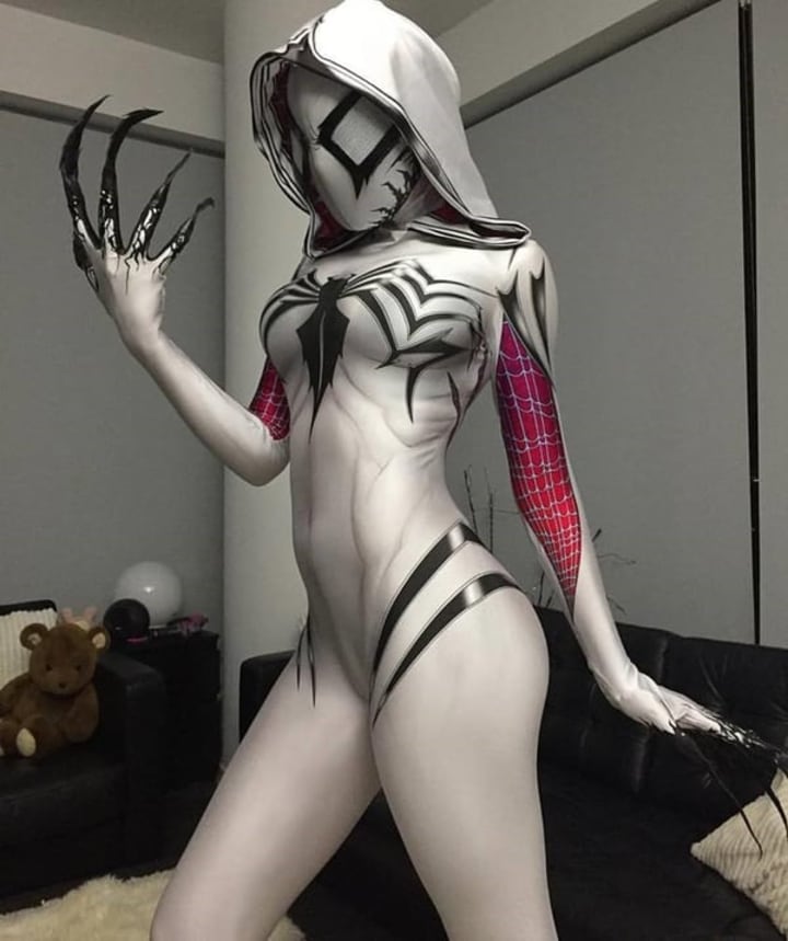 This is a phenomenal piece of cosplay, well-designed and perfectly timed for Halloween. I have to say that it's got me really wishing we'd soon see Spider-Gwen go, ah, 'Gwenom' in the comics too!