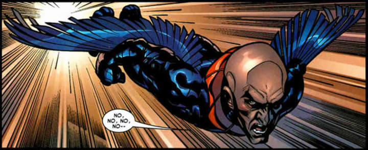 Black Cat returned the Vulture to the Owl, and after being tortured by the crime-boss's sadistic goons, Toomes later appeared alongside Electro et al as part of Norman Osborn’s Sinister Twelve. Wearing a helmet to mask the disfigurements inflicted upon him, luck did not favor our feathered friend once again — he was subdued, with his other team members, by the Avengers. Poor Vulchy just couldn't catch a break!