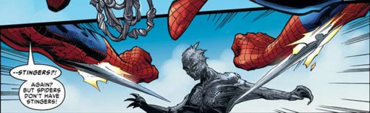 Spider-Man gets to grips with his stingers [Credit: Marvel Com mics]