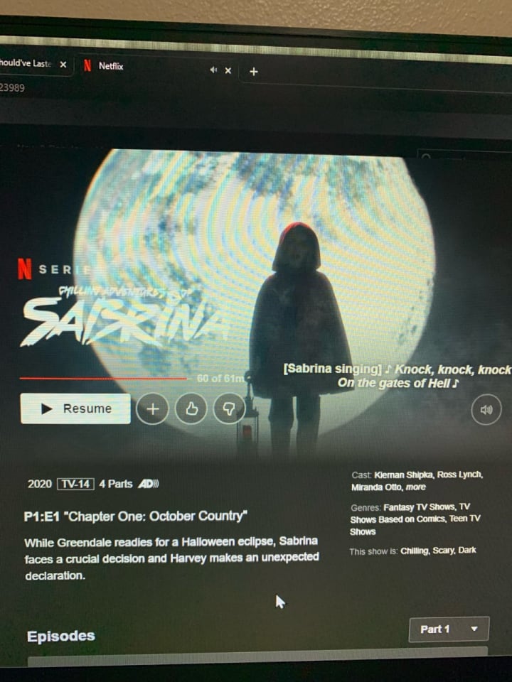 The Chilling Adventures of Sabrina was definitely a show that should've stayed longer than it did. It was an amazing spin on the original Sabrina; where Sabrina the Teenage Witch was a more family friendly TV show, this version is not so family friendly. I loved the transformation of the older version to this newer version because the creators thought of what young adults would rather watch. I wish that one, the season had more episodes. Two, I wish they would've created more seasons to showcase more of her relationship with Nick. I loved the way the creators showcased their relationship, even if it was for a short time. When he told Sabrina they were endgame, it made my heart skip a beat. I was hoping that they would end up back together, even with everything that happened to them before that. It broke my heart when Nick came out of the portal happy in the season finale, only to find that the love if his life had died in the process. His love was big enough that he ended his life to be in the afterlife with her.