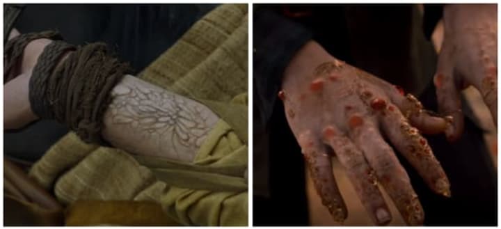 If you think Ser Jorah Mormont's outbreak of Greyscale was bad, how about growing jewels from sores on your hands. Dorothy seems to have a rather nasty case of jewel hand, but it also looks like it gives her some powers to take on the forces of evil. Maybe NBC is swapping out ruby slippers for a ruby hand?