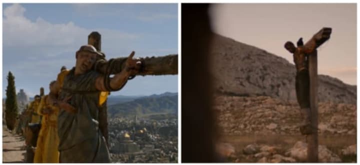 Long and winding roads can be dangerous places when you are lost on your own in a strange land, let alone when you have corpses nailed up to guide the way. A tarred and "strawed" Oliver Jackson-Cohen plays Lucas, who we are guessing is Scarecrow in 2017. You have to hand it to NBC though, having the Scarecrow's backstory of being nailed to the cross is definitely a reimagined and much darker origin story. Almost Nolan-esque.