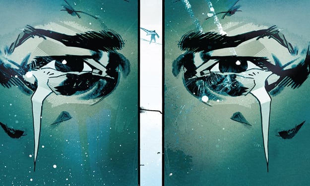 The interiors here are bloody brilliant! The linework is exquisite and how we see the varying weights and techniques being utilised to create this level of detail is phenomenal. The first page, thankfully a delicious splash page, showcases everything about the interior artwork here from the detail in the characters, the clothing like the books and the wallpaper or art it just pops out at you and is utterly brilliant in how it’s finished. The way we see the composition within the panels bringing us depth perception, a sense of scale and that overall sense of size and scope to the story is magnificent to see. The utilisation of the page layouts and how we see the angles and perspective in the panels shows a masterful eye for storytelling. The colour work is just as brilliantly rendered. That it is utilised judiciously to emphasise moments and make them pop like fireworks is sensational to see.