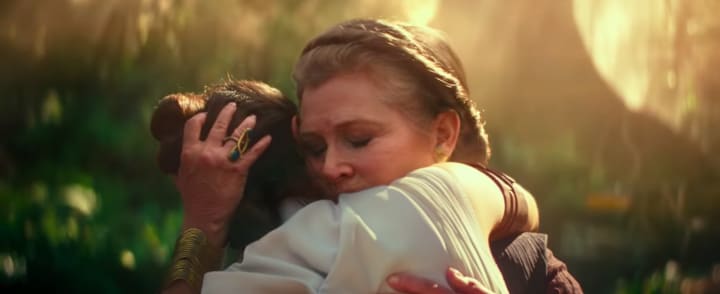And here, we have a shot of Rey hugging Leia. Now, I do not know what will happen to the character of General Leia in this film, as Carrie Fisher tragically passed away a while back, so I assume that she will have a very minor role or will be written off as dead in the opening crawl.