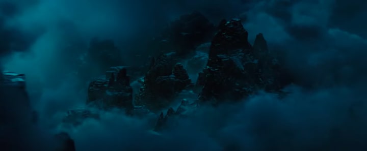 We get a shot of a cloudy, mountainous planet. It doesn't appear to be Ahch-to or Canto Bight, so I assume this is a new planet that we have not yet seen in the Star Wars galaxy.