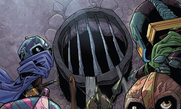 The interiors here are bloody marvellous! The linework is clean, crisp and strong and with the varying weights and techniques being utilised to bring out the attention to detail in such strong ways is just gorgeous. From Chewy, to the armour, see outfits, to the faces and facial expressions, what we see really brings the reader into the story. Backgrounds are utilised well to enhance and expand the moments as well as work within the composition of the panels to bring out the depth perception, sense of scale and the overall sense of size and scope to the book is amazing. The utilisation of the page layouts and how we see the angles and perspective in the panels show a remarkably talented eye for storytelling. The various hues and tones within the colours being utilised to create the shading, highlights and shadow work show a wonderful eye for how colour works and how to maximise its impact.