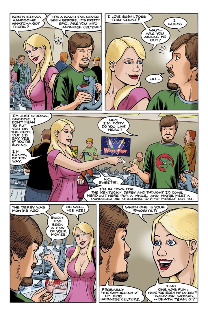 I like the way that this is being told. The story & plot development that we see through how the sequence of events unfold as well as how the reader learns information is presented exceptionally well. There really is something humorous about the way that we see this unfold and unashamedly Sonya will flirt to get something she wants whether it’s a part in a film or simply some sushi. The character development that we see here is fantastic and it’s a combination of the dialogue and how we see the characters act and react to the situations and circumstances they encounter that fleshes them out. The pacing here is great and as it takes us through the pages revealing the story it is definitely full of those superb moments that make you want to see more.