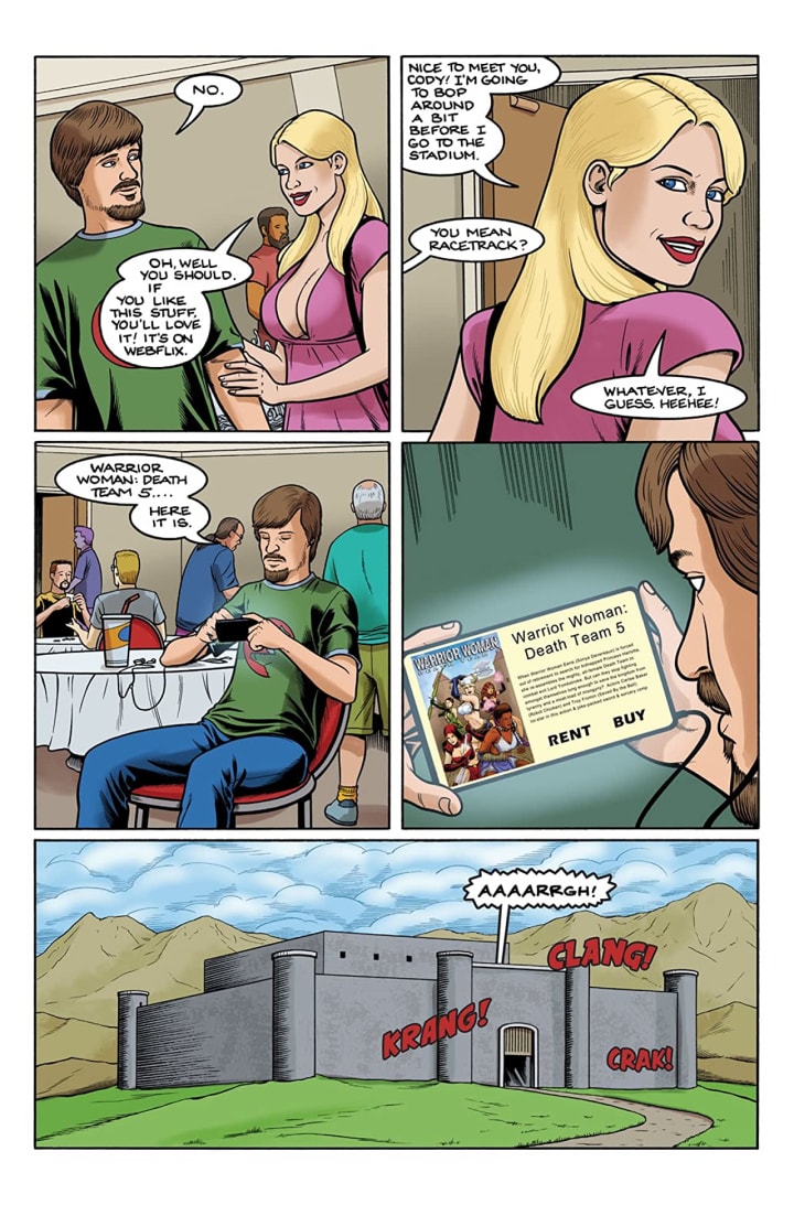 Hollywood's 306th best actress stars in the hilarious, action-packed sword & sorcery movie Warrior Woman: Death Team 5. When Warrior Woman Eena (Sonya Devereaux) is forced out of retirement to search for kidnapped Princess Harlotta, she re-assembles the mighty, all-female Death Team to combat evil Lord Tombstroke. But can they stop fighting amongst themselves long enough to save the kingdom from tyranny and a moat-load of misogyny?