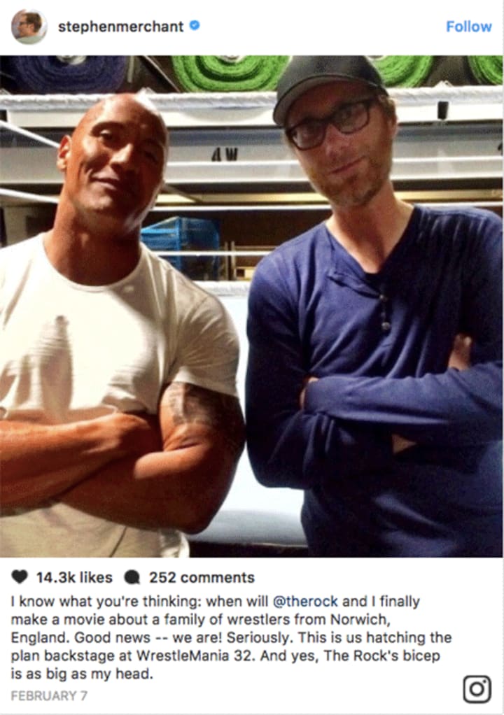 Stephen Merchant And Dwayne Johnson Prepare To 'Rock' In WWE Wrestling Film