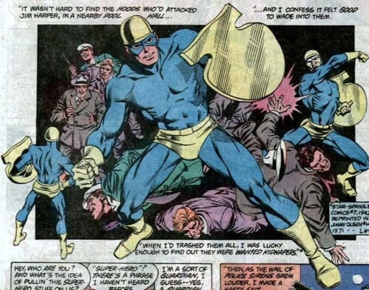 Around since 1942, The Guardian was first introduced as a Metropolis police officer.
