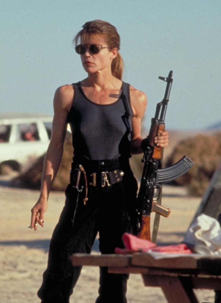 While she isn’t the main action hero of the first Terminator film, Sarah Connor is a major character in the sequel. She’s tough, she’s spirited, she’s the main human hero, and she really carries the movie forward. This isn’t a damsel in distress - it’s a strong woman who knows how to hold a gun and smoke a cigarette at the same time (not saying that’s a good idea, but it does look awfully Tom Cruise bad boy cool).