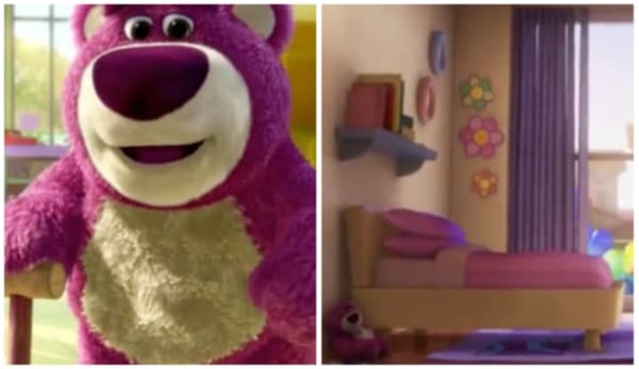 Even sourpuss Lots-O'-Huggin Bear seems to find someone to love him, popping up in the background of a little girl's bedroom in feel-good film Up.