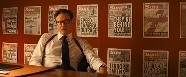 Harry Hart contemplates his relationship with the mainstream media [Credit: 20th Century Fox]