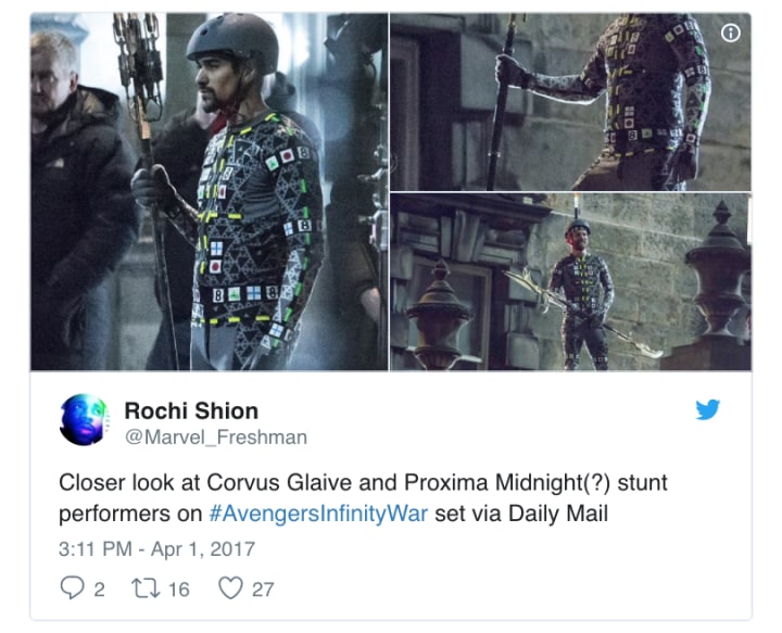 Official production for this massive venture began in February, and will likely continue for several months across numerous locations. But currently, Avengers: Infinity War is filming in Scotland, and will be for another six months. Several pivotal characters have been confirmed on set including Elizabeth Olsen (#ScarletWitch) and Paul Bettany (#Vision) and likely we'll learn of more as the behind-the-scenes photos trickle in.