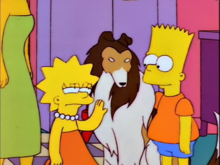 Another episode from Season 8, 'The Canine Mutiny' sees Bart sign for his own credit card. Bart then proceeds to splurge on stuff he doesn't need, racking up a huge bill. One of Bart's purchases is for a Border Collie named Laddie, a perfect dog in every way. Once Bart finds out about his account, all his recent acquisitions are taken away from him. However, when forced to give up either Laddie or Santa's Little Helper, Bart is faced with a difficult decision.