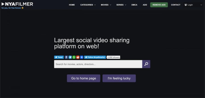 NYAFilmer is another free online movie streaming site with a simple interface and makes the users search for the movies they want to watch online for free. Users can search based on different categories and watch free movies online. Has a good collection of movies to watch.