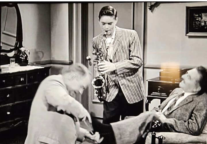 In Those Gossipin Men on January 16, 1961, the Mayberry men played instruments for a shoe salesman they thought was a talent scout. Floyd had his son play a saxophone, and he was not seen again.