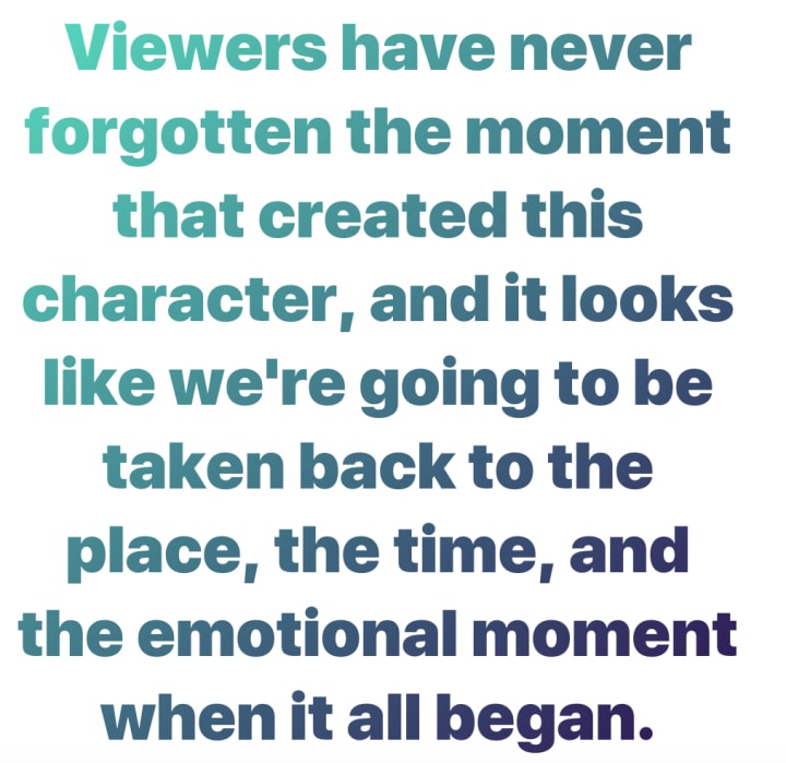 Viewers have never forgotten the moment that created this character, and it looks like we're going to be taken back to the place, the time, and the emotional moment when it all began.