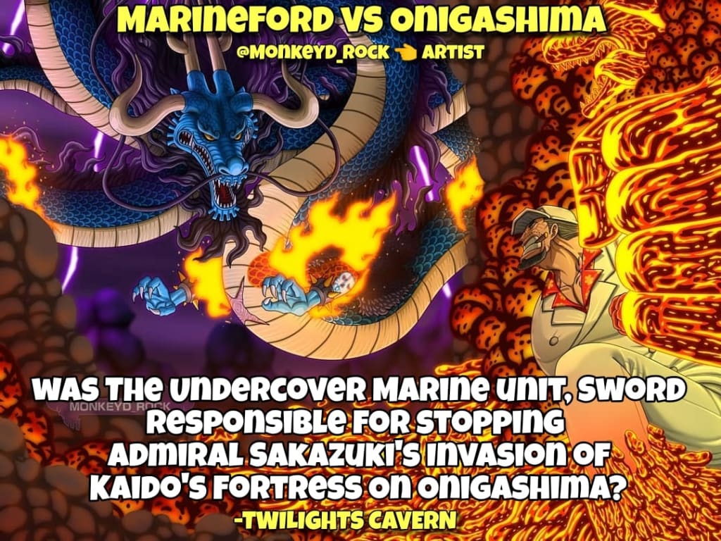 In the past I've spoken about the possibility of "Sword" being responsible for halting Fleet Admiral Sakazuki's Planned assault of Onigashima, through the undercover agents, X-Drake & Captain Koby's Covert Conversation. Unlike Former Fleet Admiral Sengoku's More laid back approach, we can expect Sakazuki to have a Much more Direct & Violent approach when it comes to exterminating the Thousands Of Pirates that Infest The waters Of The New World.