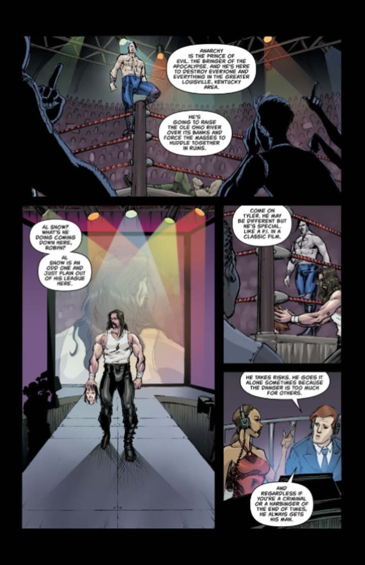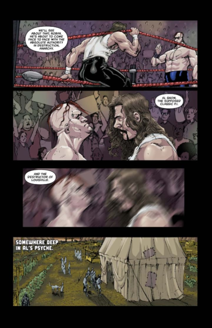 I am honoured and thrilled that I was asked to do a review for this book. I’ve been a fan of the guys at Broken Icon for years now and they’ve managed to put out some extremely entertaining books over the years and this one will stand proudly among them. Now I’ll be the first to admit I know nothing of Professional Wrestling but thankfully this isn’t a book about wrestling at all instead it’s post apocalyptic romp that explores the humorous side of the man named Al Snow.