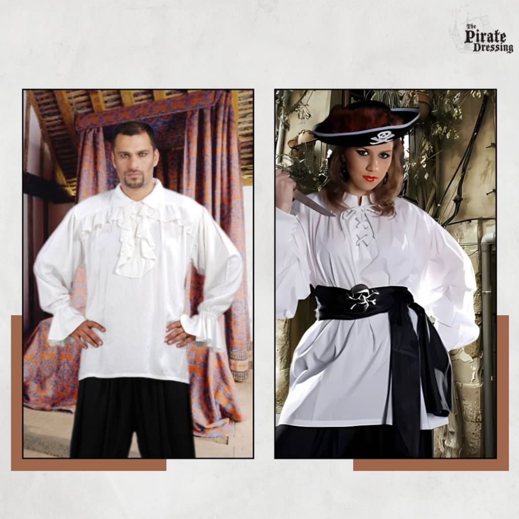 Whether you’re channeling Captain Jack Sparrow, Blackbeard, or Anne Bonny, a pirate shirt can be styled in multiple ways. Pair it with a waistcoat, corset, or long coat for a complete look.