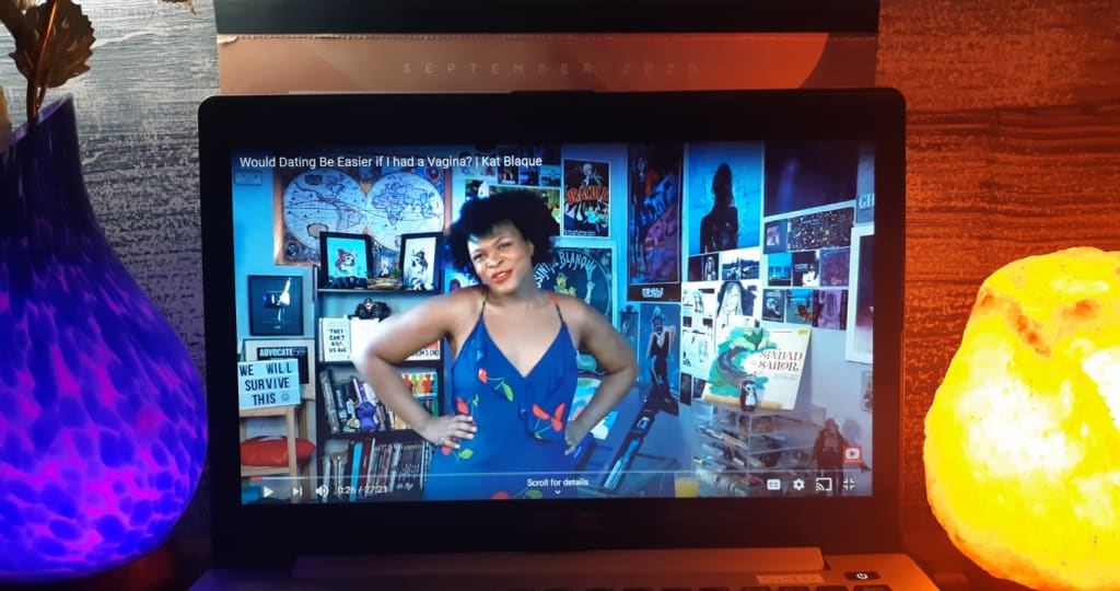 Katherine "Kat" Blaque is a Los Angeles-based Youtuber, illustrator, and content creator. Kat is also a transgender, polyamorous, sex-positive black-American woman who began making videos as a form of self expression when she was 15. Before dedicating herself to Youtube full time, she went to school for animation and did public speaking at colleges across the United States. Every week, Kat tells all with a drink in hand in her True Tea series. Standing on her decorated set in the corner of her bedroom, Kat shifts between two cameras and shares her unfiltered perspective on racism, polyamory and dating, sexuality, Youtube culture, and personal growth. Her confidence is refreshing and her 'internal monologue' style of commentary marks her unique brand of individualism on the platform.