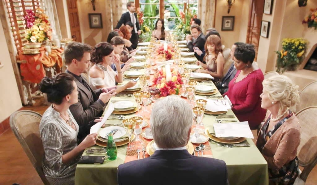 Long-time B&B viewers will recall that Eric Forrester had a beautiful longstanding tradition for the fourth Thursday in November. He would invite everyone to his home, even his enemies and for one day they would lay down their swords. The guest would go around the table taking turns saying something good about the person seated to their right. Many times frenemies and enemies were sitting side by side but each person at the table always came up with something nice to say about whomever was seated to their right.