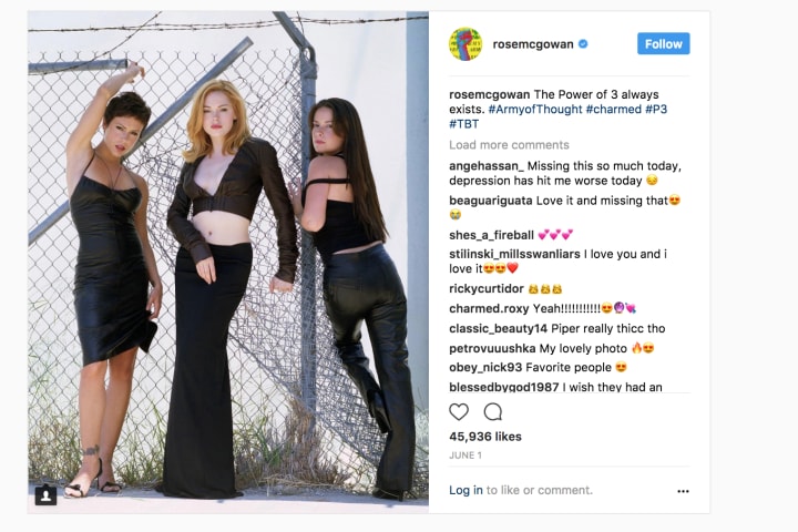 And #RoseMcGowan added a post on June 1st with the caption, "The Power of 3 Always Exists." The picture has over 42,700 likes.