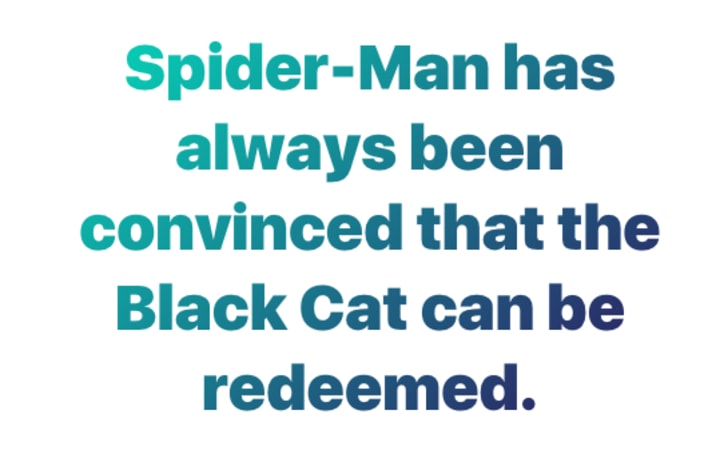 Felicia first became the Black Cat when her father was imprisoned, and she attempted to rescue him; tragically, she failed. The relationship between this young cat-burglar and Spider-Man was a fascinating one, as they navigated the choppy waters of being adversaries, whilst also being deeply attracted to one another. Spider-Man has always been convinced that the Black Cat could be redeemed, and he even managed to get her criminal record expunged at one point. It was only after a particularly dramatic team-up against Doctor Octopus that the two finally began dating, and Spider-Man even revealed his secret identity to her.