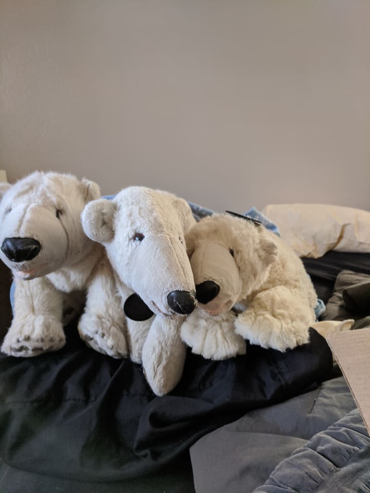 Later, Ulaq and Berit, another pair of polar bears, were also born at the Denver Zoo, but they were quickly moved to another zoo out of state and very sadly renamed. During the short excitement after they were born, I was given two more stuffed animals. Unlike with the Klondike and Snow ones, this time, I received both. I was older when I got them, and they have been kept in much better condition; no dragging them around everywhere!