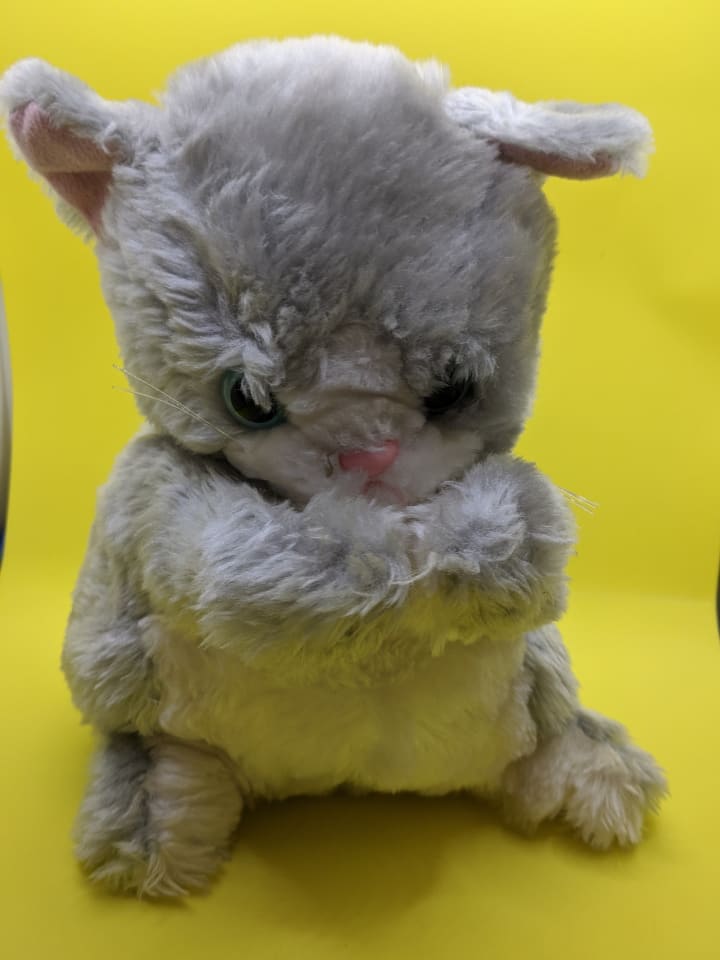 I don't know if it still works; this one moved at least the front paws. I'll have to find an appropriate screwdriver, try putting new batteries in, and see if she works! There is a professional picture in the lower part of my parents' house featuring me, seemingly kissing my brother on the head, while holding this particular stuffed animal.