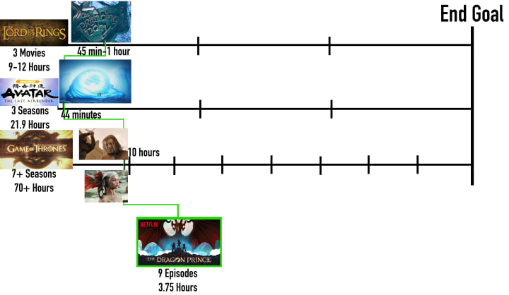 Is the storytelling as effective as something like ATLA? No, not really. There are a few episodes that kinda drag, where it takes them several episodes to complete side quests which makes overall progression feel slow. You may think this is similar to something like ATLA, where there are a lot of stand alone episodes that don't always advance the overall plot dramatically (especially in season 1), but these episodes still work because they have smaller character arcs within the episodes themselves, so it still feels like the characters are growing. With The Dragon Prince, there aren't really arcs within each episode since the season operates as one long story, so the character development feels like it takes much longer.