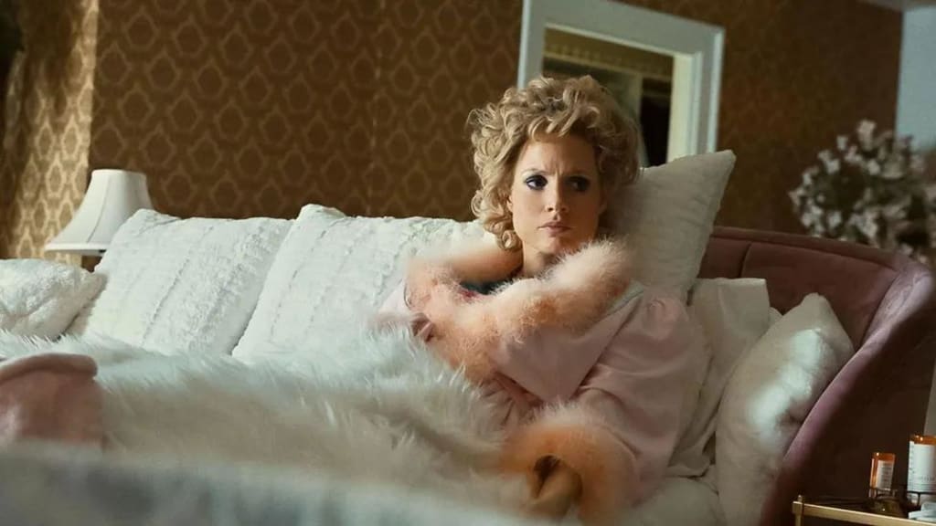 The Eyes of Tammy Faye works well enough on its own limited terms, except for the giant question it teases and never actually engages with. What did Tammy know? She sees Jim wrestling with another man and looks alarmed. She dismisses allegations that he is gay, then turns, lets her smile fade and pops another tranquiliser. When news reports surface about Bakker's financial schemes, she says to him tentatively, "We're not doing anything wrong." He responds, "Is that a question?" Ignoring the chance to know more, she simply says, "No." Wilful blindness, even so sketchily filled in, doesn’t exactly make her the heroine this engaging and frustrating film purports her to be. The Eyes of Tammy Faye isn't nuanced, but no one ever said nuance and Oscars go together.