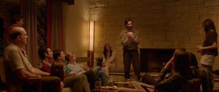 Soon, the party is in full swing and David reveals—with his friend Pruitt (a wonderfully dark, intense John Carroll Lynch) cajoling him—that he, Eden, Pruitt and house-guest Sadie are all part of a Cult that believes in the freedom of the spirit on the relinquishing of one's emotional baggage and neuroses. The group have an agenda to sign up new members to the fold—but as far as Will can see, the changes in his wife's personality is a troubling fingerprint that there is a larger agenda at play.