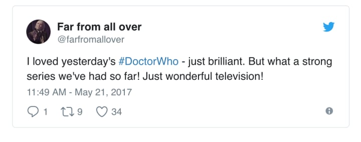 Finally, this user claimed TV was wonderful because of the way Series 10 of Doctor Who has given fans such positive vibes: