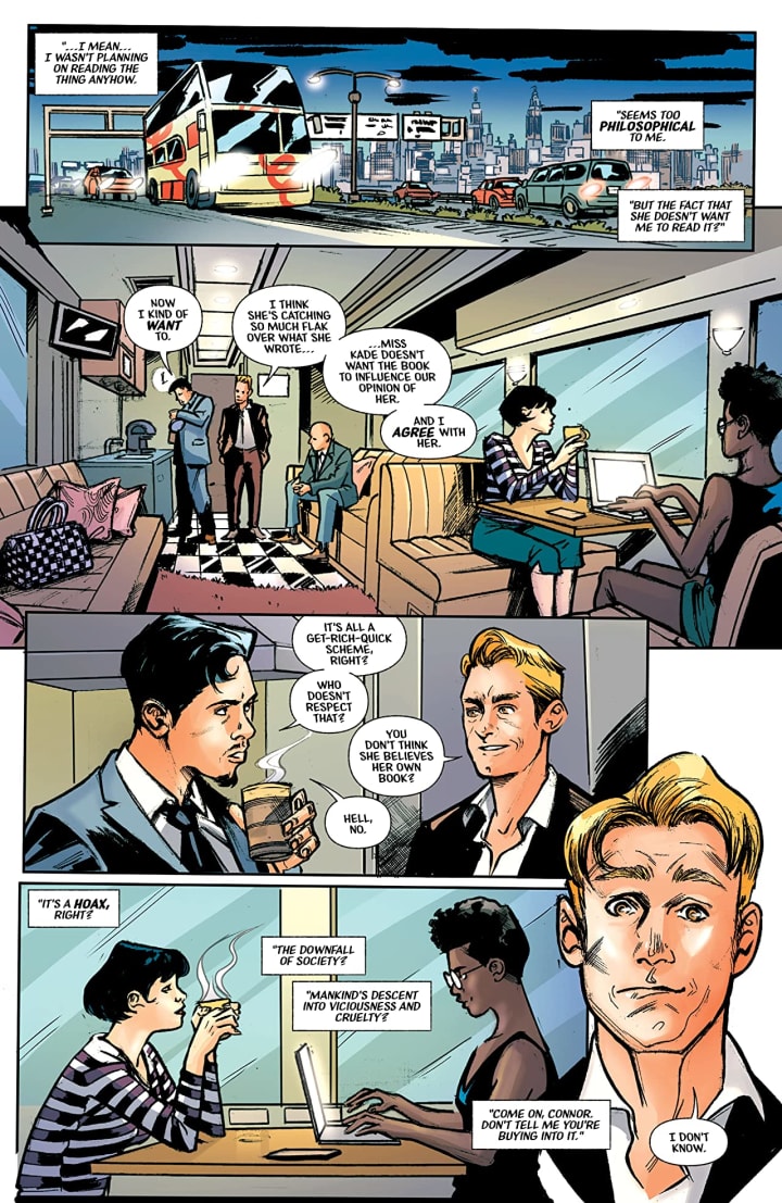 The opening, the two book signings and the bar scene are where we see some of those moments that made me even more excited about this story. What we see, learn and experience is sensationally presented. The writing is stupendous and the characterisation is fluid and expanding while the interiors bring this to life in some truly marvellous ways all of which work together to make this one hell of a great read.
