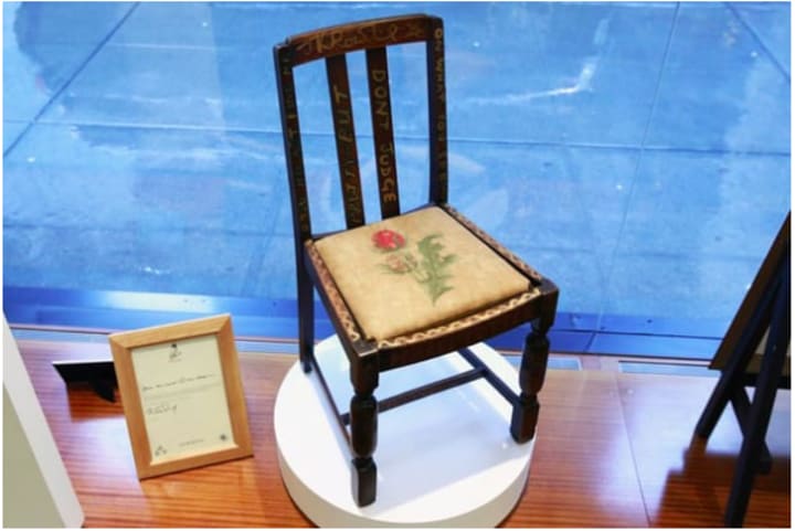 The 1930s was one of four mismatched chairs that J.K. Rowling picked up for free when she visited Scotland. This was way before she became famous with her magical books. Rowling originally put her chair up for auction to help support her charity in 2002.
