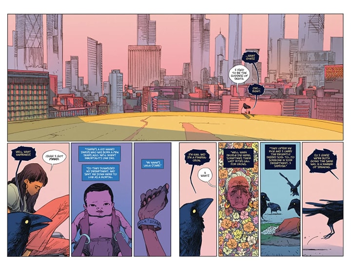 The avatar of Death now exists in the mortal world as twenty-something Laila Starr after humanity begins the path to discovering immortality.