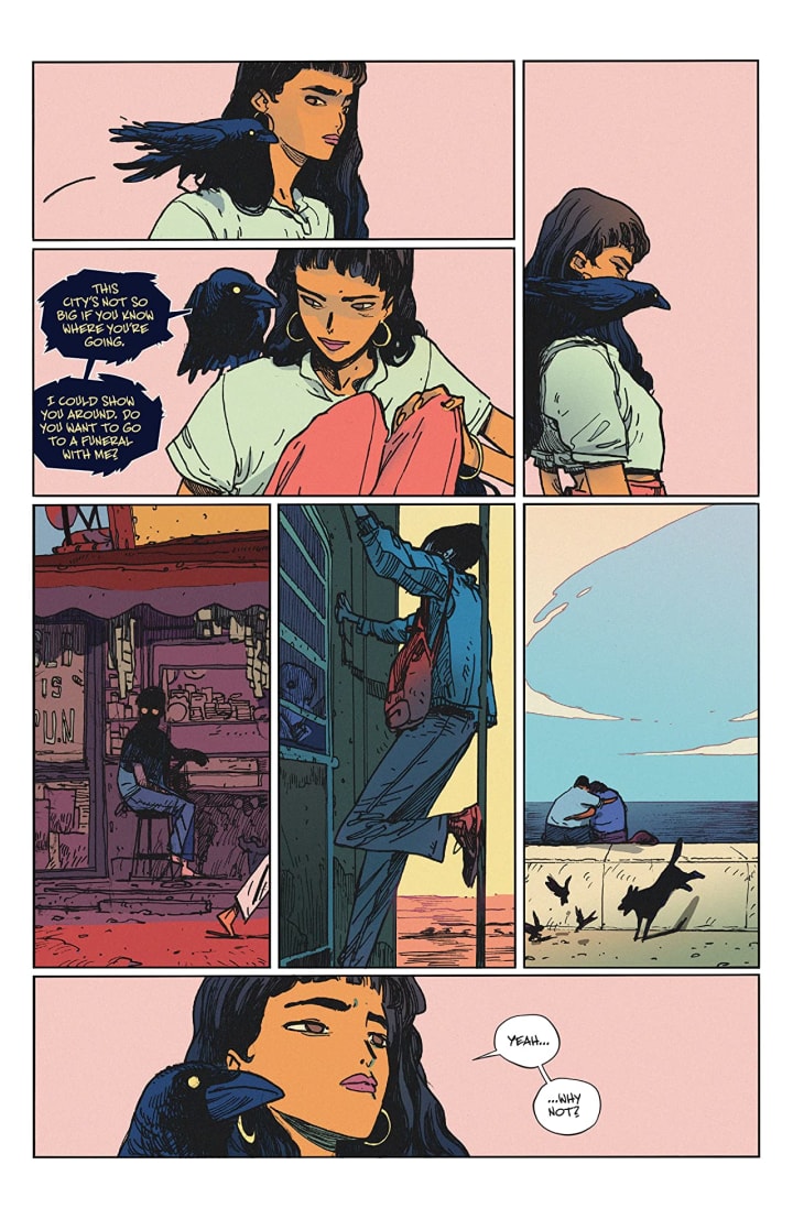 This is such a charming book. There is an inescapable charm to seeing Laila trying to figure out how to live like a normal human. This issue she meets someone who understands her dilemma and is in the same boat that she’s in, being on the verge of extinction, well just downsized from the job and life she’s always known. Kah is an amazing character and companion for Laila during this stage of her life and I do hope that the pair continue to be friend throughout the run of the book. There is an interesting look at the caste system here as well, the hired help should remain outside not to be allowed in and shunned basically, not to be seen nor heard and to me that’s deplorable. Still it engages the reader in some wonderful ways and makes you think and wonder about what we’re seeing.