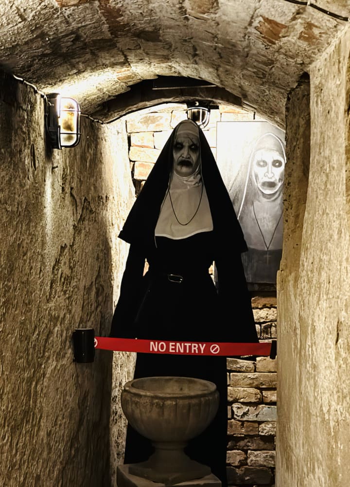 Beneath the museum is a cave in which there is a small exhibition of religious-based horrors including a set of nuns huddled over things and a bridal dress on a statue. But, the one thing that was the most exciting for me (and possibly one of the only reasons I even went to the museum in the first place) was the figure of Valak the Nun from The Conjuring Universe complete with a replica painting that you can see the original of in The Conjuring 2. I absolutely love Valak the Nun as she is one of my favourite movie characters ever. The fact the sign said 'no entry' was upsetting since I would like to give the demonic nun a big hug. I support whatever she stands for.