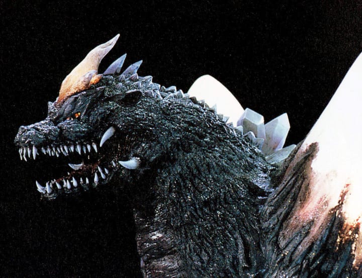 So far in the rebooted series, each of the opponents had come from Earth, even King Ghidorah, who previously had been known as a space dragon. With this film, an opponent came from space for the first time, but not from an alien world. Following the defeat of Biollante, which was a plant merged with Godzilla cells, the hybrid cells drifted into the atmosphere and eventually into space, where they were sucked into a black hole and subjected to intense radiation, mutating them further into a new monster - SpaceGodzilla!