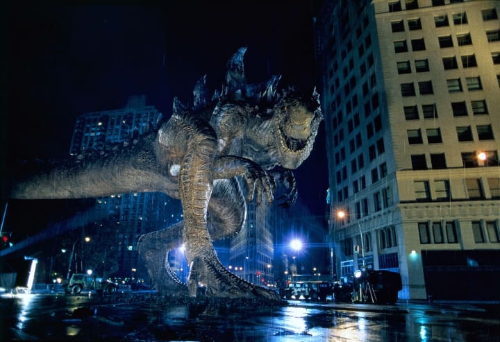 The budget yielded well-known actors like Matthew Broderick and Jean Reno, and CGI was used for the first time, rather than a guy in a suit smashing miniature cities and fighting another guy in a suit. By using CGI, we were also able to see Godzilla do something new, like jump. This version of Godzilla, spawned from an iguana mutated by nuclear testing (by the French, which was an ongoing concern in the 90s), was faster and less bulky than any previous version of Godzilla. Much more like an enormous velociraptor from "Jurassic Park," which was a much newer sensation at the time.