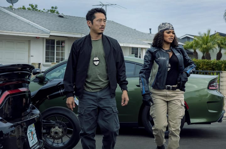 We have Teyana Taylor, fresh off her first-ever Golden Globe win and surely awaiting her Oscar nomination, stepping into the role of Detective Numa Baptiste. As captivating as she always is on screen, Teyana fully inhabits the character, effortlessly elevating every scene she’s in. Then we have one of my absolute favourite actors in Hollywood: Steven Yeun. If you have been around since The Walking Dead days, then you know what an excellent and charming actor Steven Yeun is. With every role he plays, he always manages to steal the show, and his part as Detective Mike Ro is without a doubt one of the highlights of this movie.