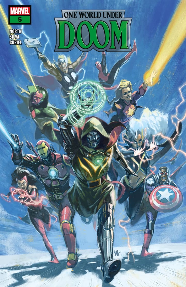 Emerging six months later, Doom installs himself as ruler of Earth, with the agreement of world leaders, having promised a number of tempting boons such as Universal free healthcare for all. Doom manages such good publicity for himself that Earth's heroes initially struggle to oppose his rule.. until, in typical Doom fashion, it is discovered that the barrier around Latveria is fueled by the lifeforce of captive humans. Doom is ultimately defeated, losing the power of Sorcerer Supreme.